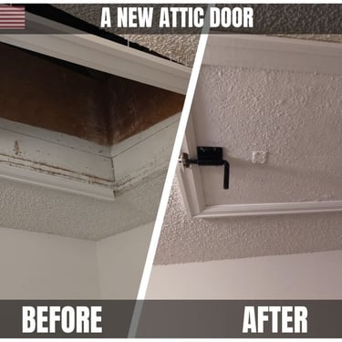 "He fixed the broken attic door and replaced it with a new one, also fixing the popped trims. very satisfied, will definitely contact again"